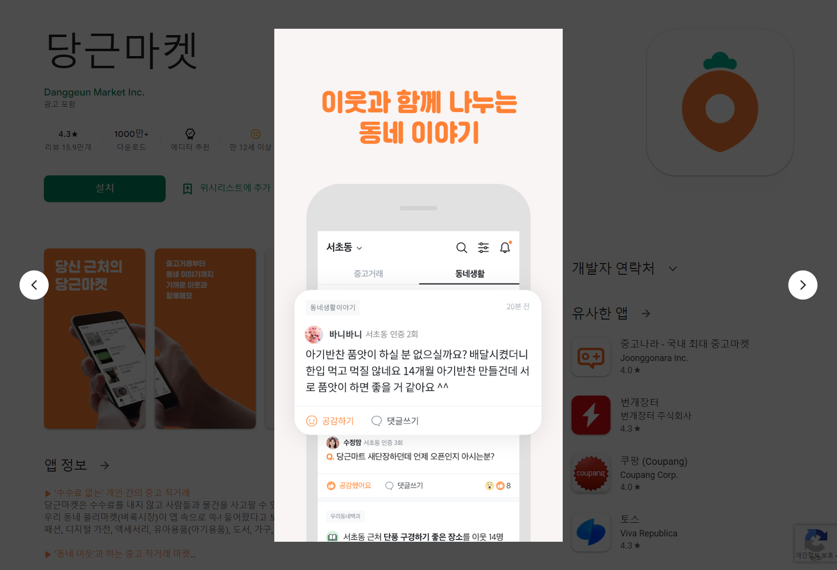 당신 근처의 당근마켓, 중고거래부터 동네 이야기까지 가까운 이웃과 함께해요.