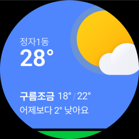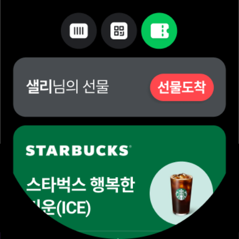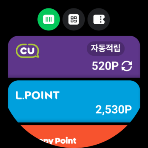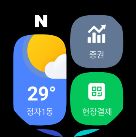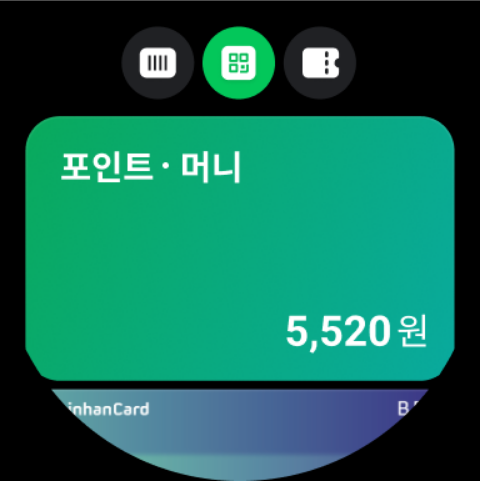 워치에서 날씨, 증권과 같이 매시간 변화하는 정보를 볼 수 있습니다. 또한 멤버십과 교환권을 확인할 수 있고, 현장 결제 기능을 사용할 수 있습니다.
