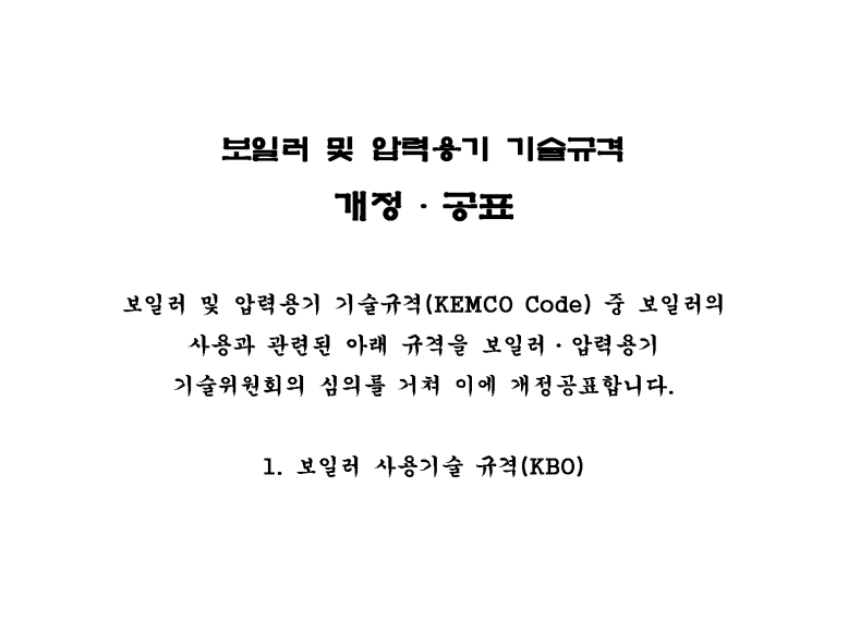 KEMCO Code는 보일러 및 압력용기의 관련 직무 종사자들이 활용할수 있는 기술적 지침으로 보일러의 운전관리와 보일러 관리자의 책무는 우리가 알아야하고 숙지하고 있어야 할 내용이라고 사료됩니다.