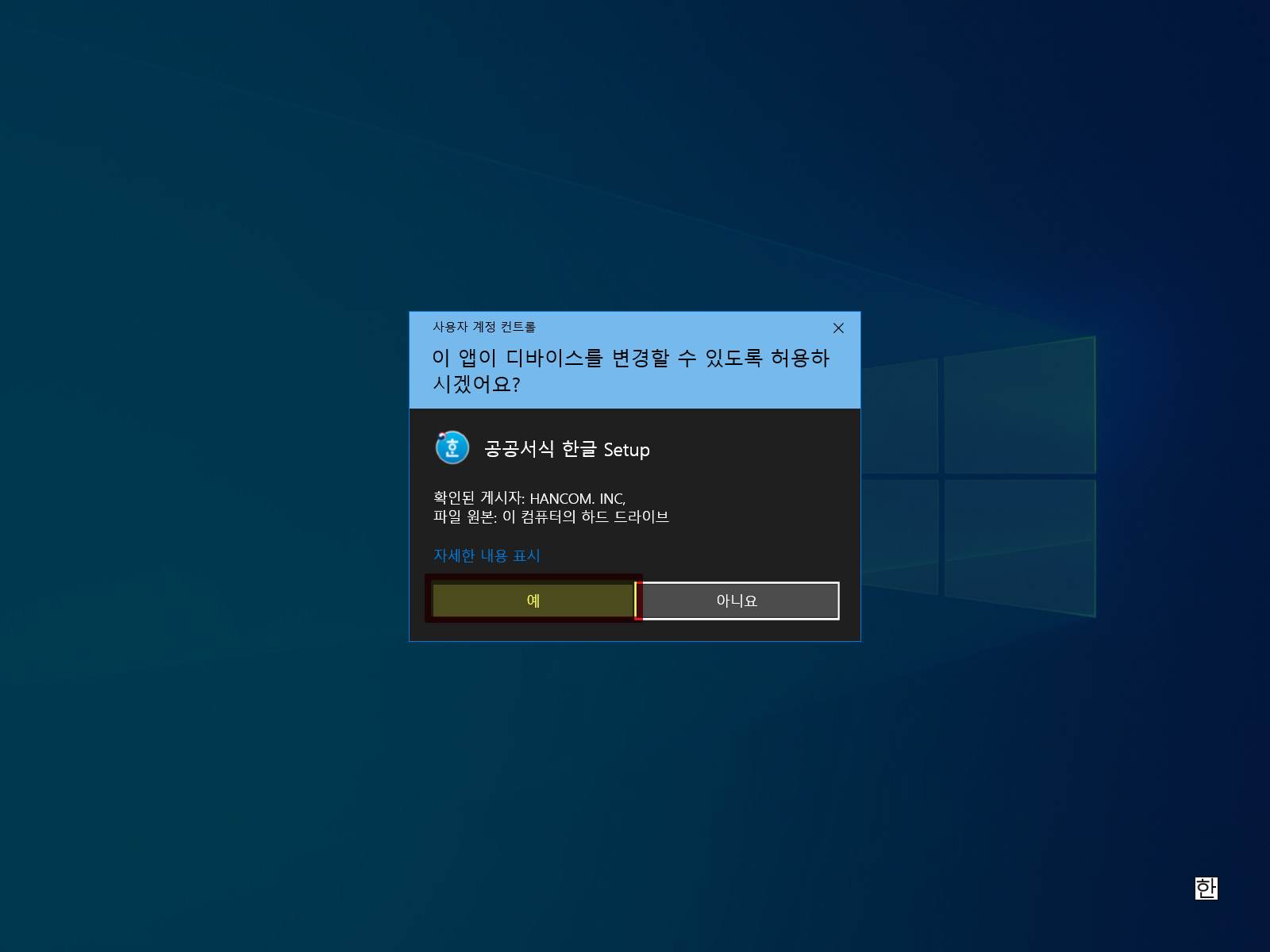한글뷰어, 공공서식 한글 설치 파일이 다운로드 폴더에서 찾을 수 있습니다. 설치 파일을 실행합니다.