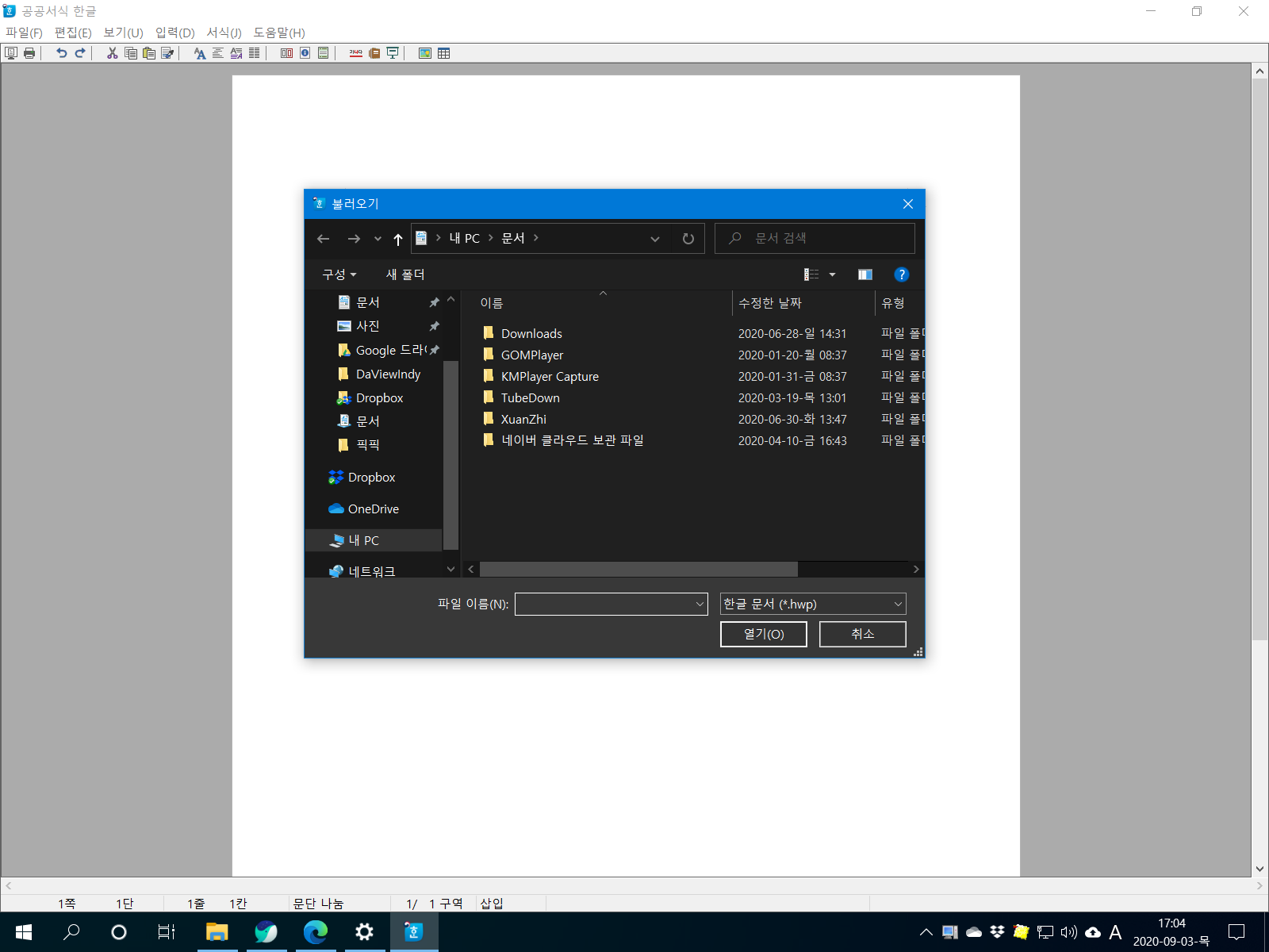 실행되면서 바로 파일 열기 창이 열렸습니다.