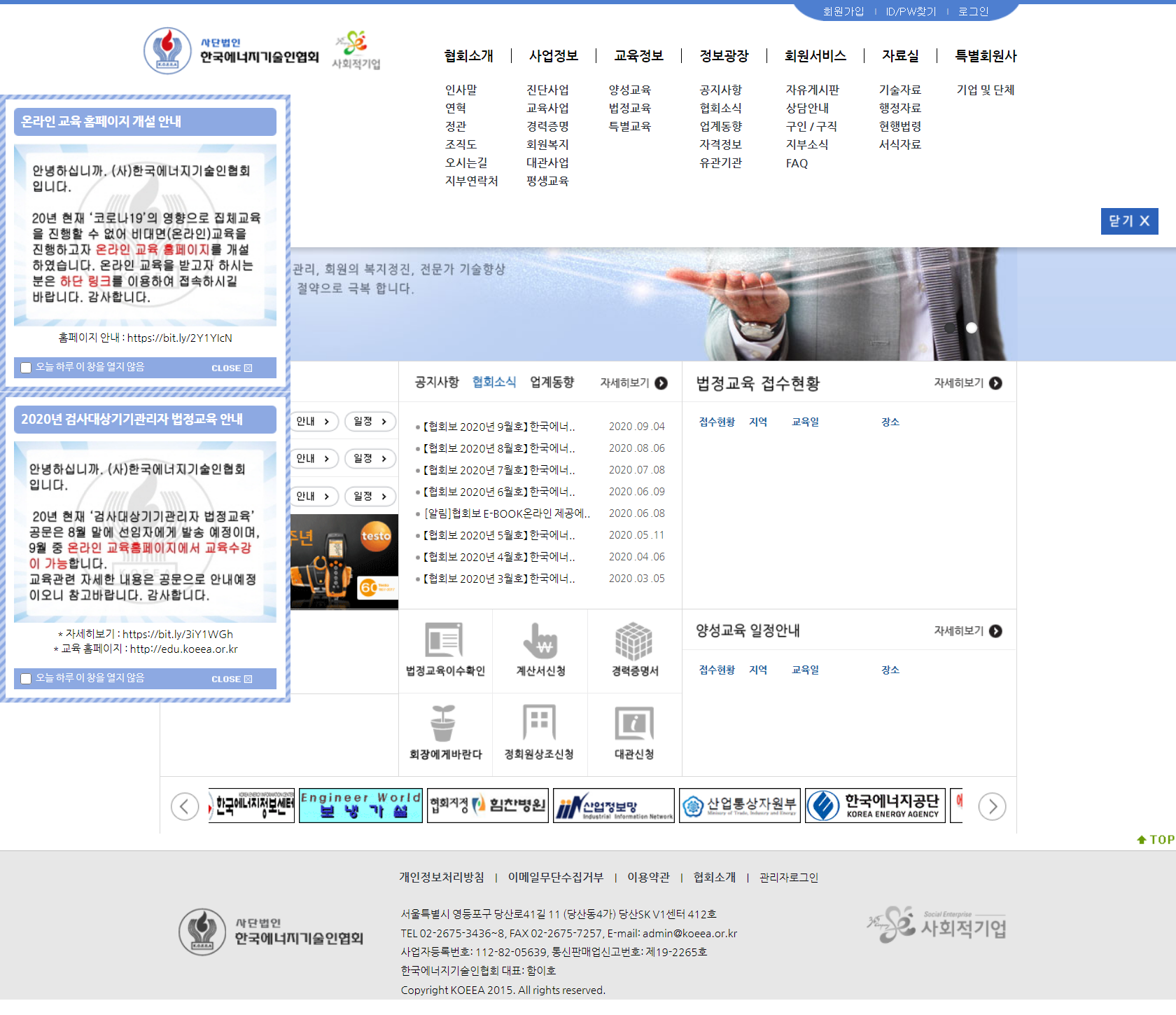 본 협회에서는 「2020년 검사대상기기관리자 법정교육」 및 「2020년 에너지 관련 기술인력 양성교육」을