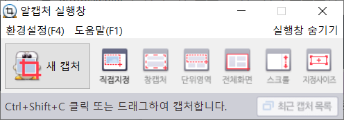 알캡쳐 실행 모습입니다. 간단하고 쉽게 이해되도록 구성되어있습니다.