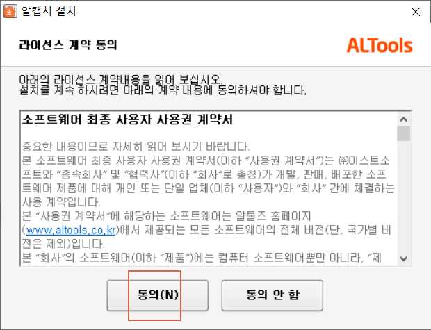 알캡쳐가 이제 설치가 진행됩니다.