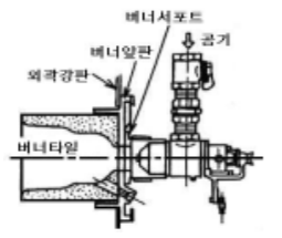 버너 연소에 있어서 송풍기로부터 보내 오는 연소용 공기를 받아 공기 흐름을 조절함과 동 시에 동압의 대부분을 정압으로 변환시켜 노내로 보내지는 공기 흐름이 소정의 일정한 분포 또는 대칭적인 흐름이 되도록 하는 바람 상자이다.
