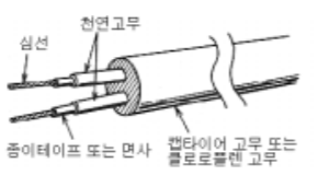[그림 KRM-0800.163]과 같이 전선을 고무로 절연 피복한 심선을 1개 내지 여러개를 꼬 아서 그 틈새가 남지 않도록 다시 고무를 압출하여 피복함으로써 완전한 안전성을 갖는 전 선(케이블)이다.