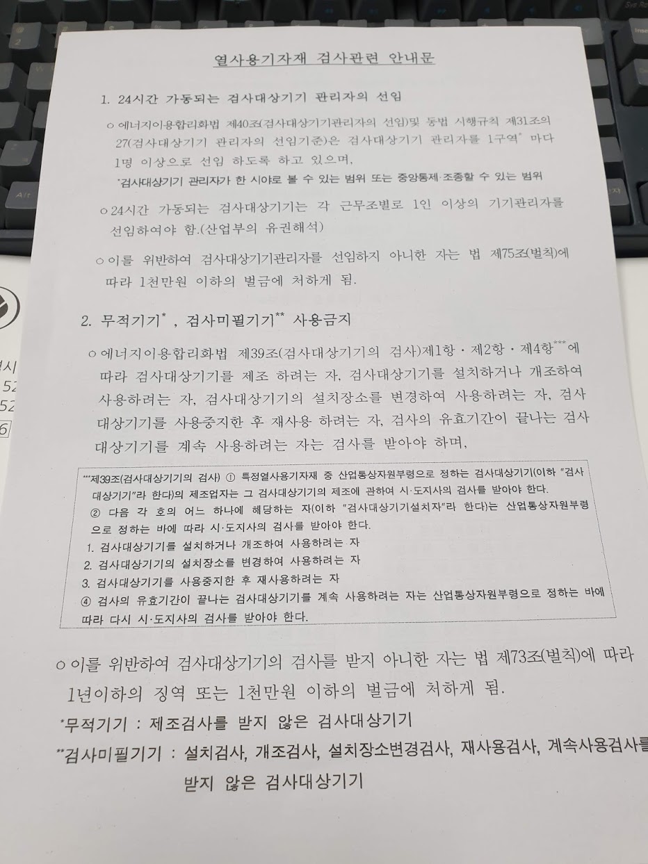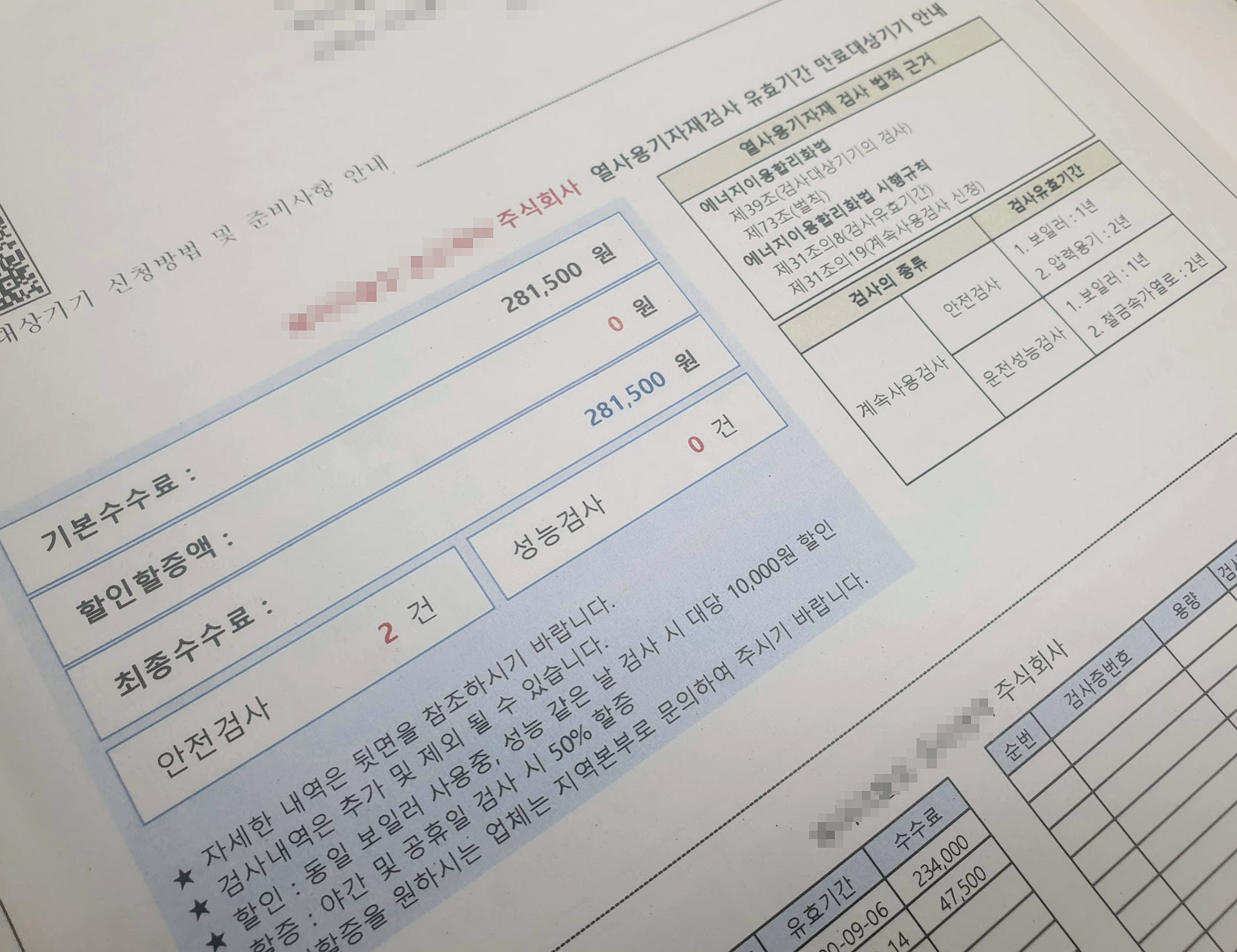 물론 한국 에너지공단에서 검사 주기가 도래하면 위에 첨부된 사진들처럼 공문으로 사전에 검사대상 기기에 대하여 알림을 보내고 있으므로 큰 문제는 없지만 간혹 검사기한을 놓치는 경우도 있으니 확인이 필요합니다.