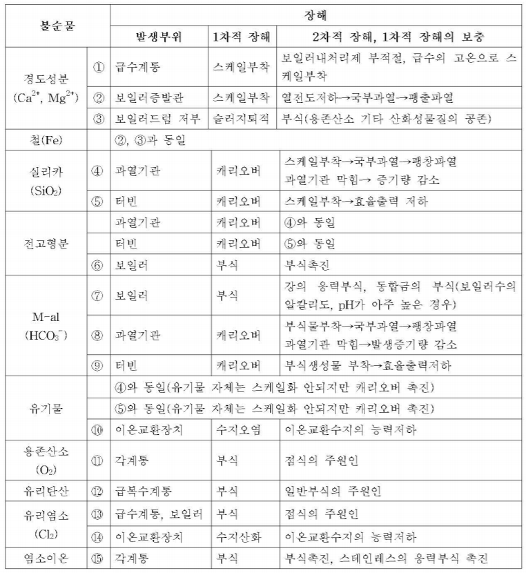 KBO-5112. 수중의 주요 불순물에 의해 보일러 설비에서 발생되는 장해