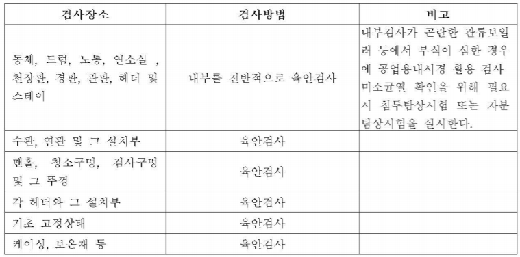 * 검사를 위해서는 보일러 모든 검사부위의 슬러지 및 스케일이 제거된 상태여야 합니다.