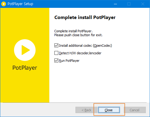 <Close>를 누르면 오픈 코덱이 설치가 되면서 팟플레이어가 실행됩니다.