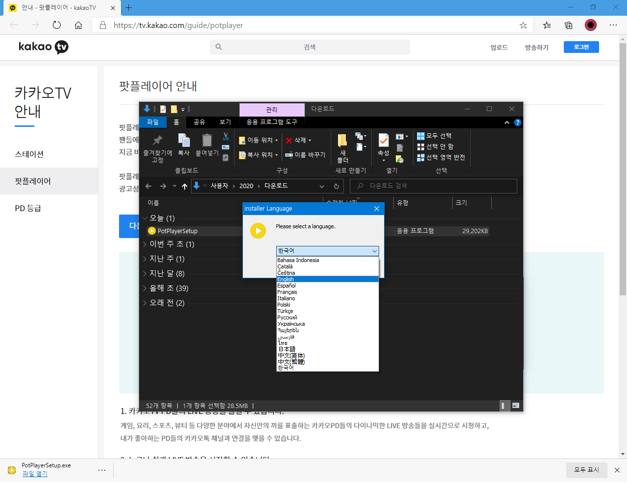 물론 카카오TV를 사용하셔야 한다면 <한국어> 그대로 설치하시면 됩니다.