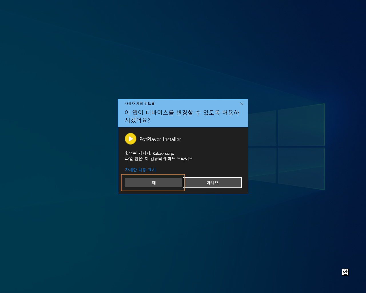사용자 계정 컨트롤이 실행되면 <예>를 선택합니다.