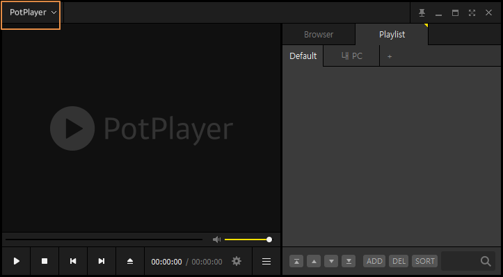 카카오TV 및 방송하기 등의 기능이 제외되어 있어 순수한 동영상 재생 전용으로만 사용할 수 있습니다. 좌측 상단의 <PotPlayer>를 누르면 메뉴가 나타납니다.