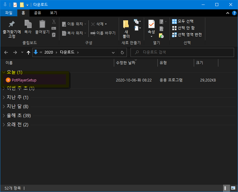 다운로드가 완료되면 PotPlayerSetup 파일이 보입니다. 팟플레이어 설치 파일을 실행합니다.