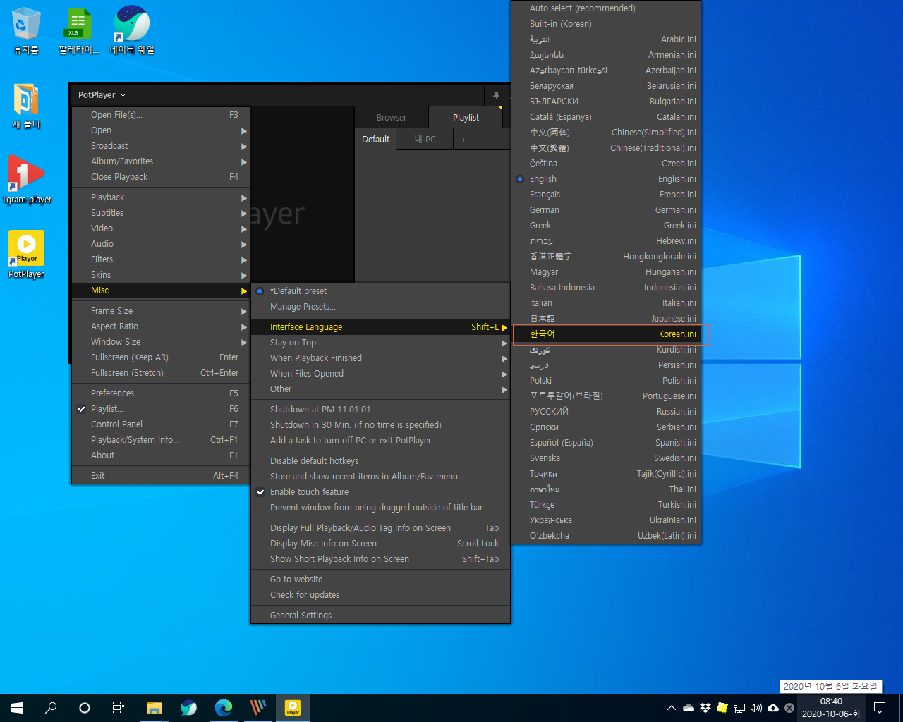팟플레이어의 모든 메뉴가 한국어로 나오기 때문에 사용하기에 영어보다는 편리할 듯합니다.