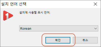 KM플레이어의 설치 창이 열리는 모습이 닮아 있습니다. 한국어가 기본 설정이므로 <확인>을 누릅니다.