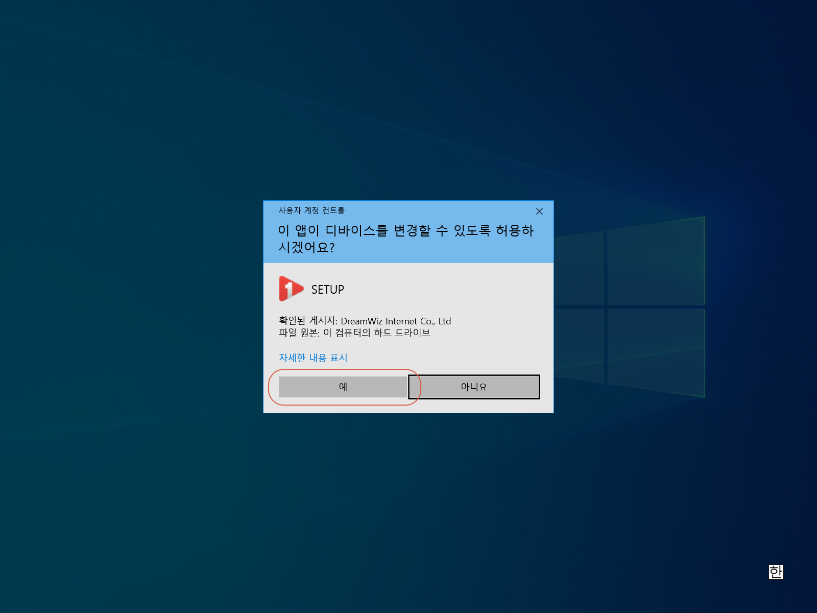 사용자 계정 컨트롤이 창이 열리면 <예>를 선택합니다.