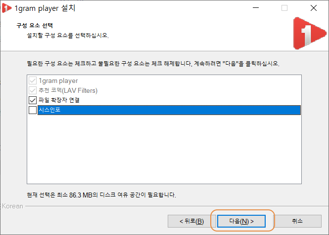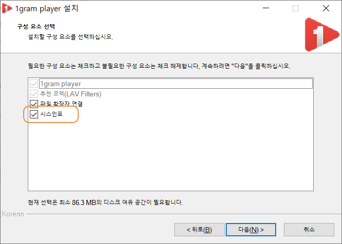1그램 플레이어를 설치하면서 신경 써야 할 부분이 있으며, 첫째는 시스인포라는 프로그램을 체크 해제하여 설치되지 않도록 하여야 하며, 한 캡처 플러스가 설치될 수 있으니 이 또한 체크 해제가 필요할 수 있습니다. 하지만 추가 설치 프로그램은 유용하게 사용될 수도 있으며, 설치하여도 큰 문제는 없을 듯합니다.