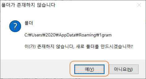 설치 폴더 생성하려고 합니다. <예>를 누릅니다.