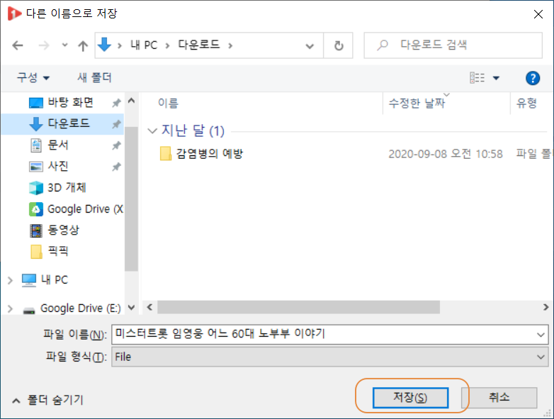 다운로드 경로를 지정하고 <저장>을 누릅니다.