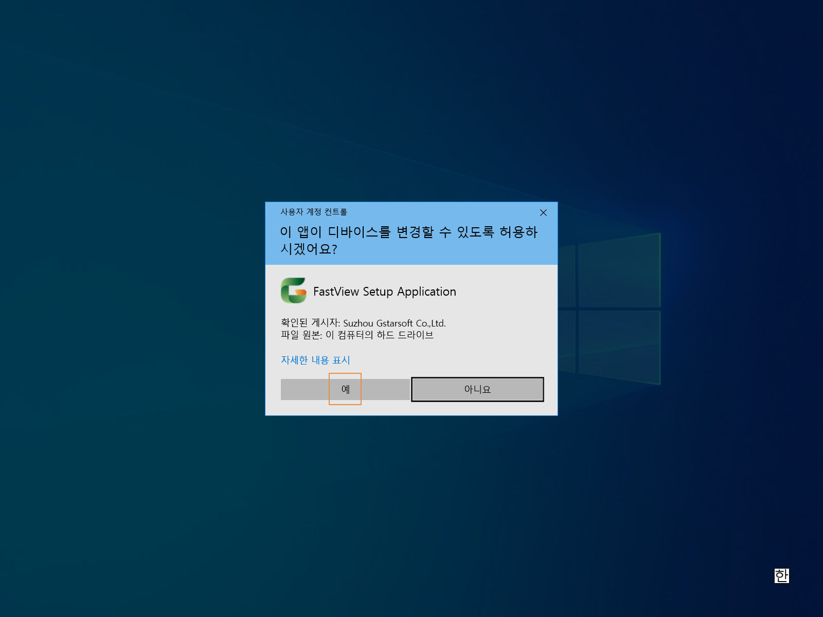 사용자 계정 컨트롤입니다. <예>를 누릅니다.