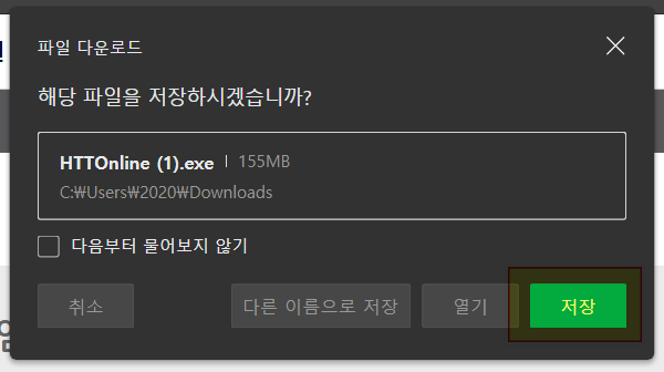 파일 용량이 약 155MB 입니다. <저장>을 누릅니다.