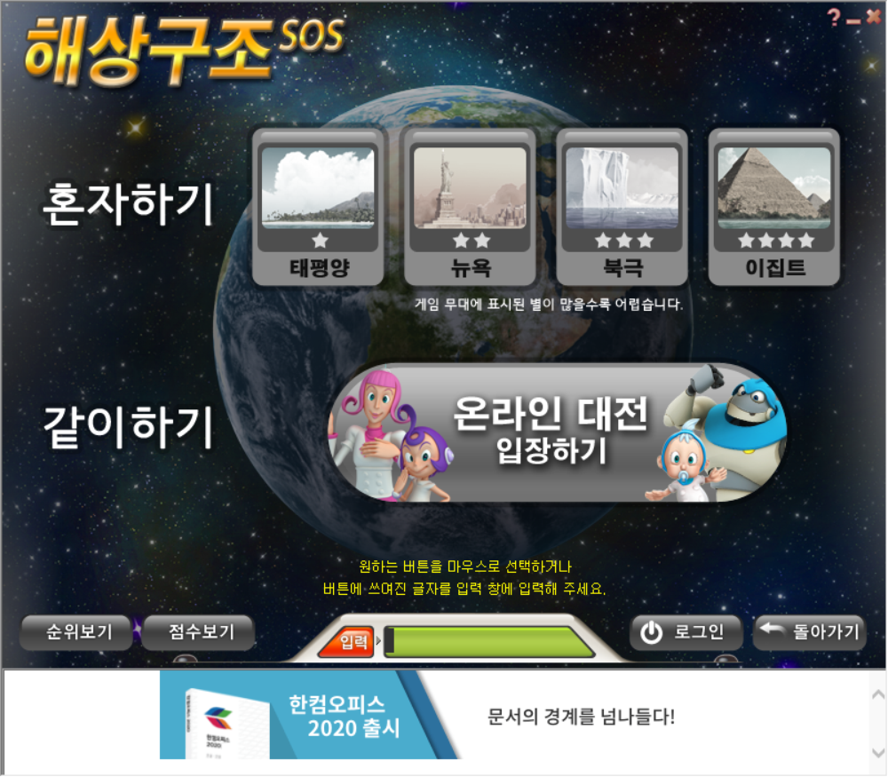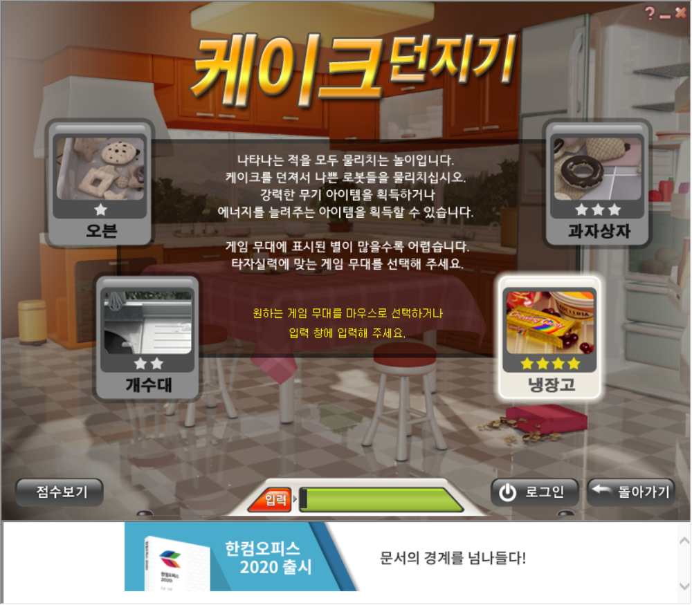 한컴오피스에 포함되어 배포되는 것이 아닌 단독으로 한컴 타자연습 프로그램만 무료로 다운로드하여 설치가 가능하며, 예전의 케이크 던지기 게임과 해상구조 SOS 게임도 똑같이 사용해볼 수 있습니다.