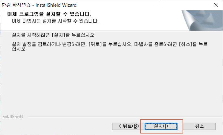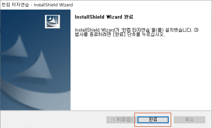 <완료>를 누릅니다. 한컴 타자연습 프로그램이 설치 완료되었습니다.