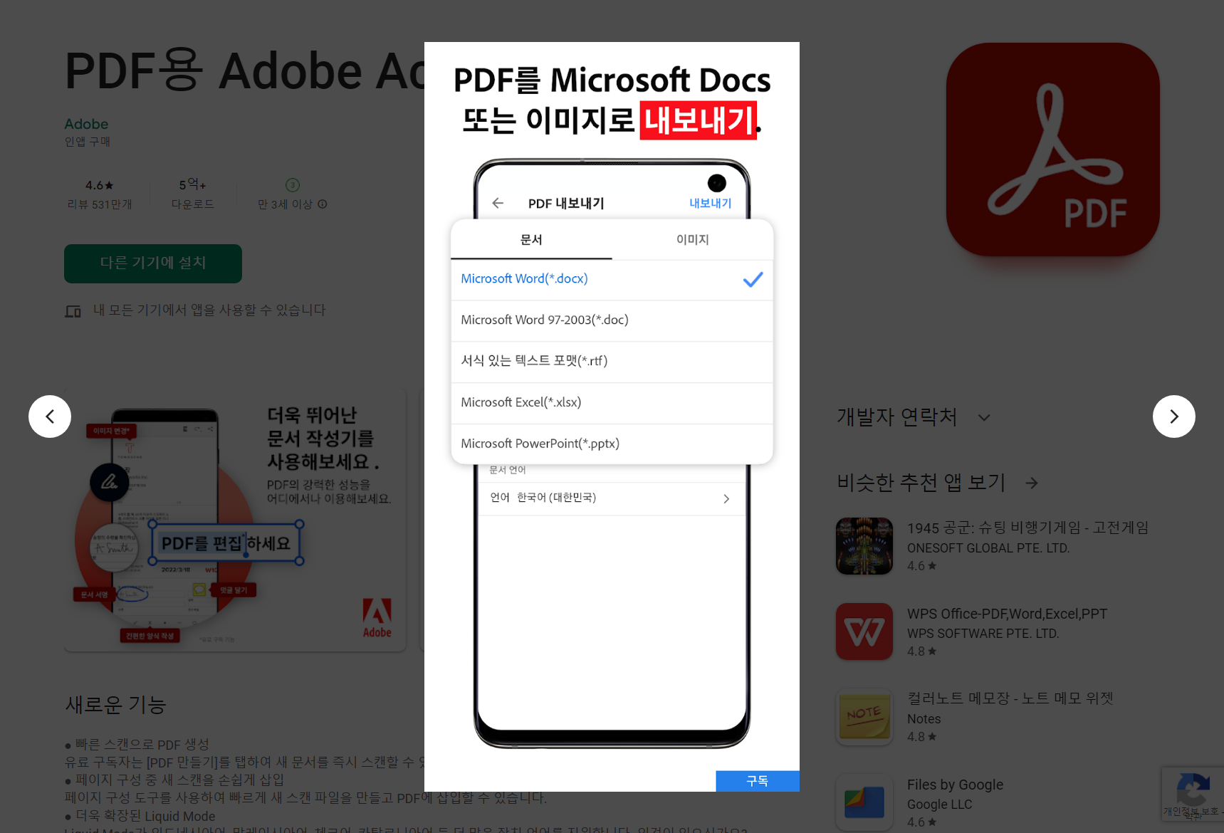 PDF를 Microsoft Docs 또는 이미지로 내보내기