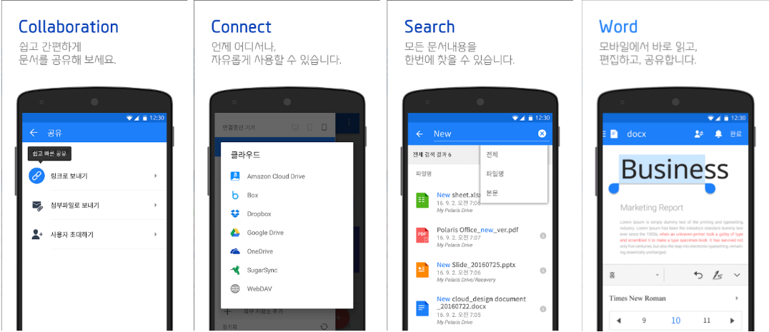 • 데스크탑, 태블릿 그리고 Android폰까지, 당신의 모든 문서들이 Polaris 드라이브나 다른 클라우드 공간에 최신버전으로 업데이트 됩니다.