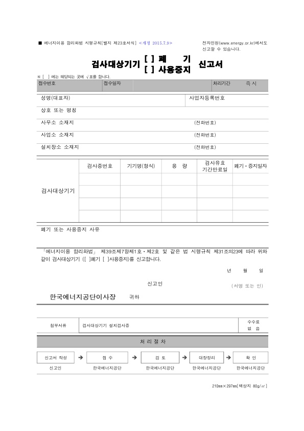 ✔검사대상 기기(폐기, 사용중지) 신고서