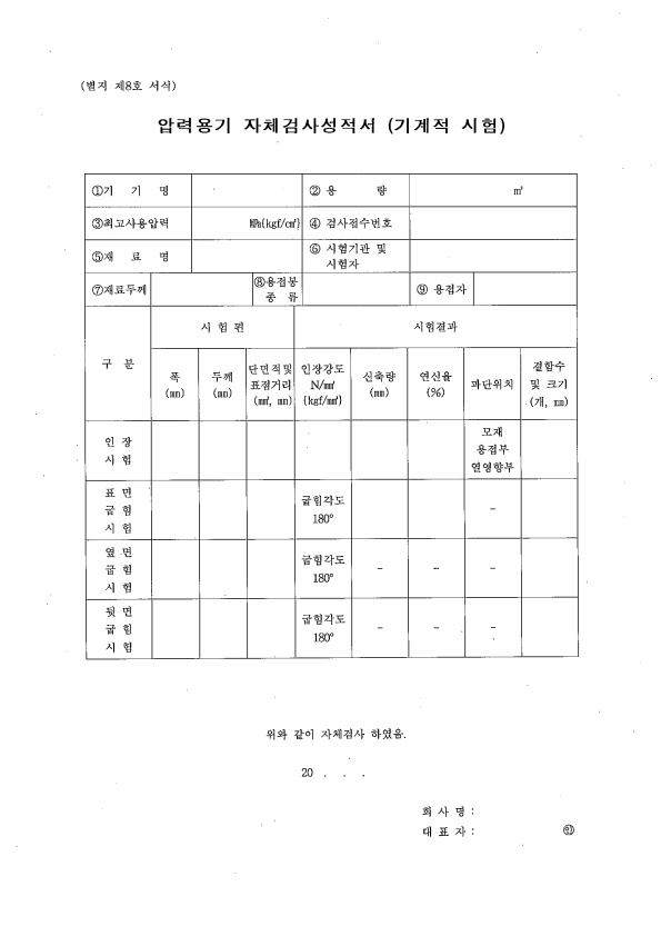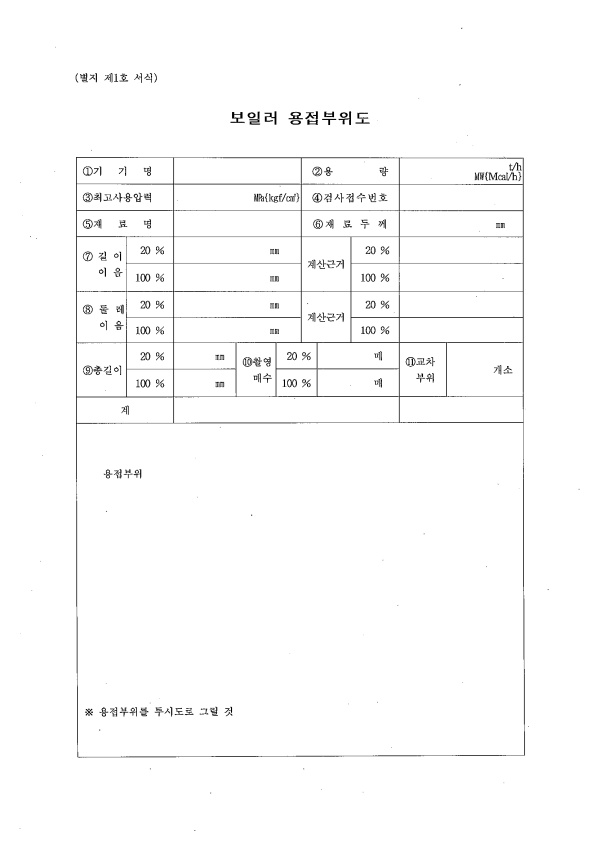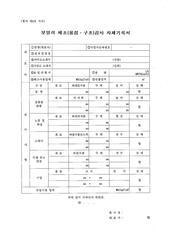 20 보일러 제조(용접 구조) 검사자체 기록서