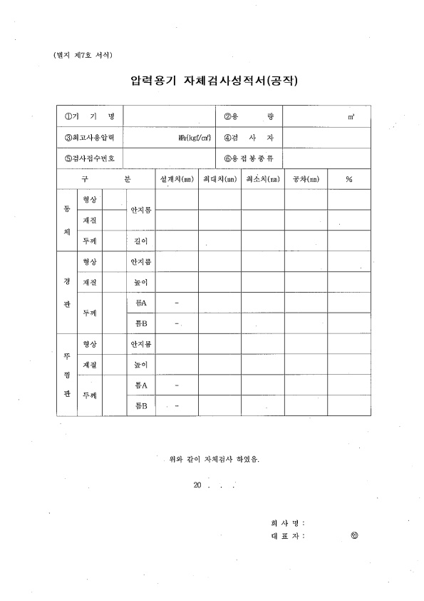 23 압력용기 자체검사성적서(공작)