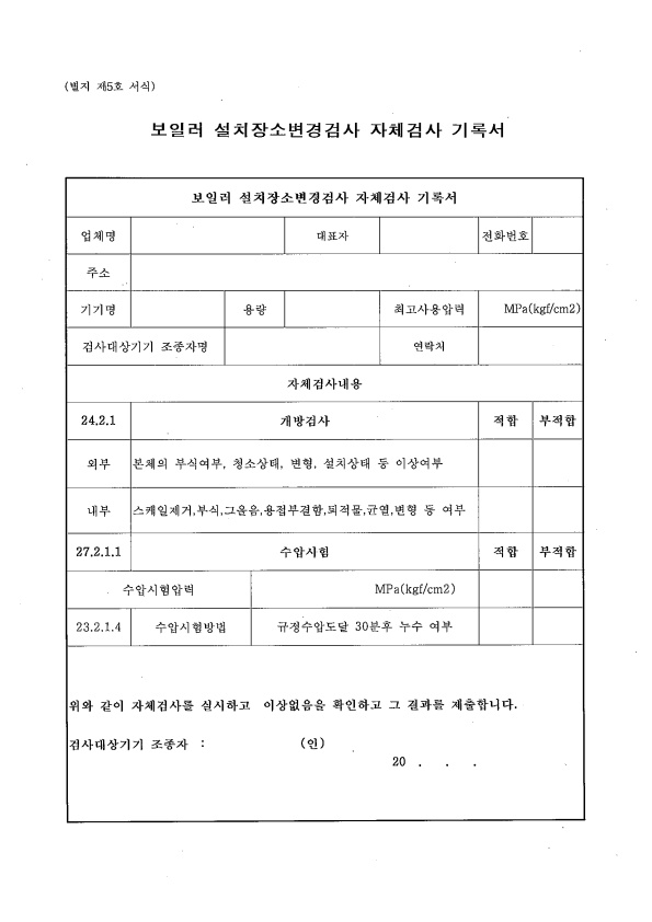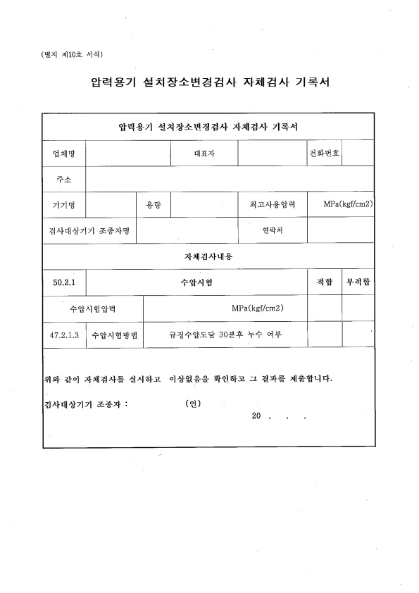 26 압력용기 설치장소변경검사 자체검사 기록서
