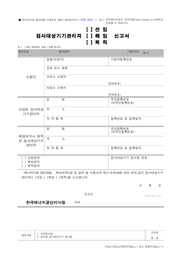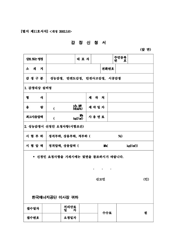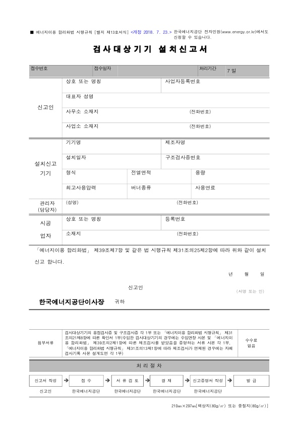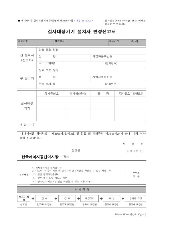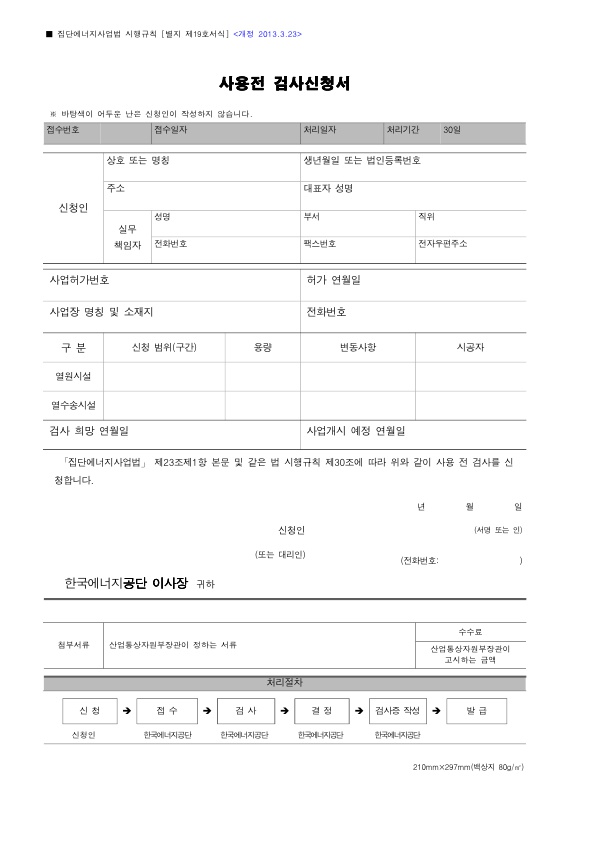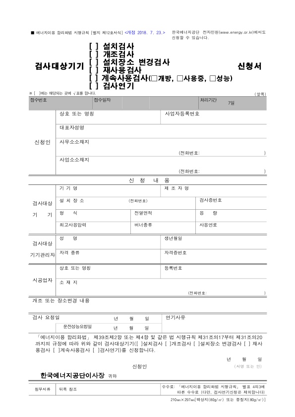 한국 에너지공단의 검사민원 양식을 직접 다운로드하시려면 여기를 참조하세요.