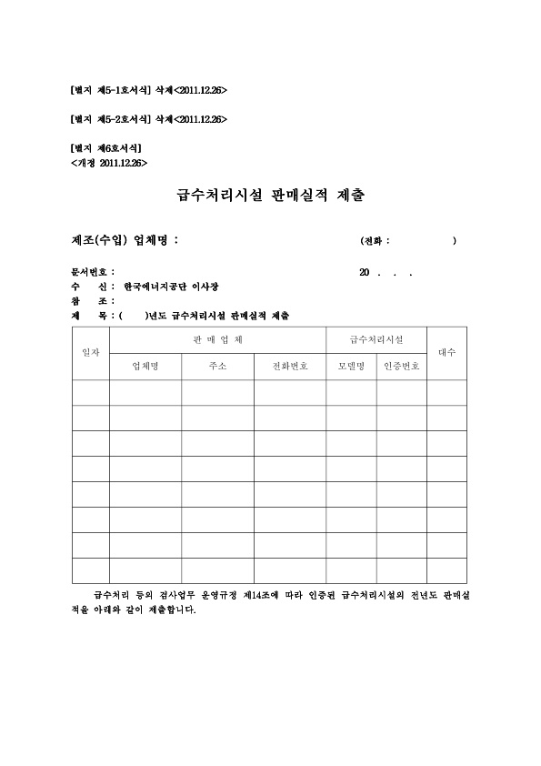 32 급수처리시설 판매실적 제출