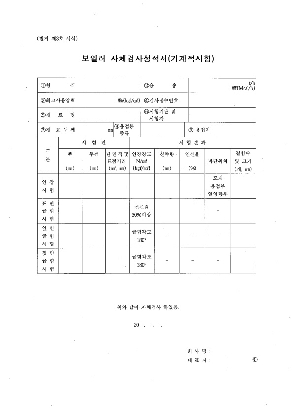 19 보일러 자체검사성적서(기계적 시험)
