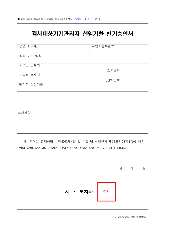 10 검사대상 기기관리자 선임 기한 연기승인서