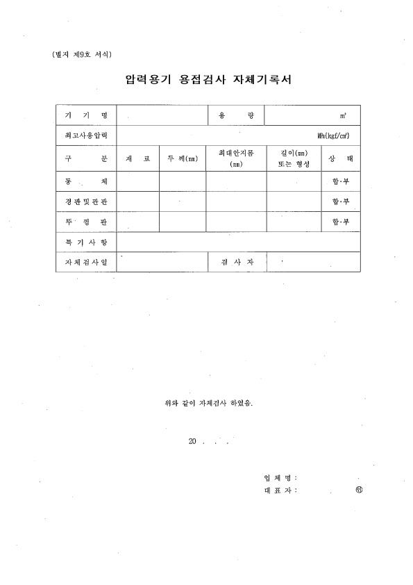 21 압력용기 용접 검사자체 기록서