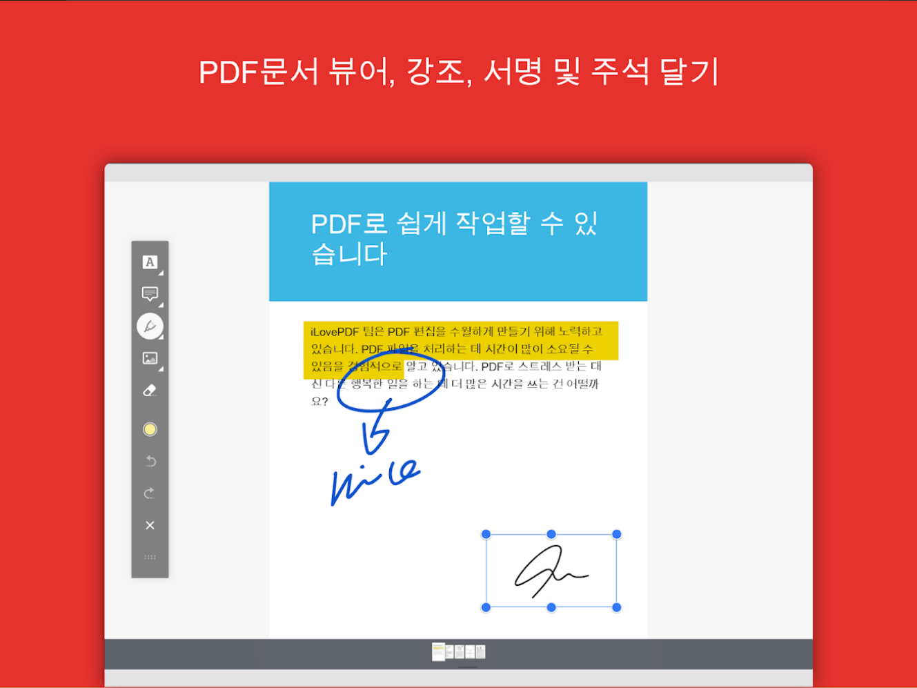 모든 PDF 도구를 한곳에 모았습니다! PDF 파일 편집과 수정을 100% 무료로 간편하게 할 수 있습니다! PDF 문서에 서명을 추가하거나 기기에서 바로PDF 양식을 작성 할 수 있습니다. iLovePDF 모바일 앱은