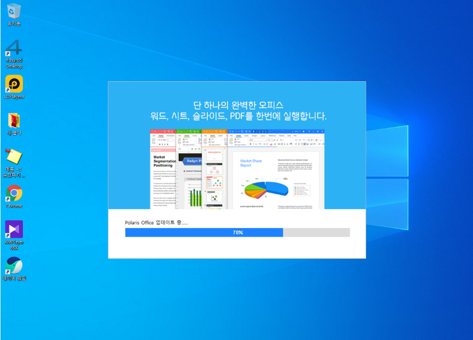 언제부터인가 폴라리스 오피스가 업데이트를 하라고 합니다. 컴퓨터를 켜거나 재시작할 때마다 우측 하단에 업데이트 알림 창이 열려서 거슬리기도 하고 해서 오늘은 업데이트를 해보려고 합